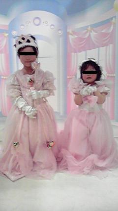 これが実に重宝していて、週に2~3度、朝食は焼きたてパンを食べています。 最近ちょっとアレンジを変えてみて、メロンパン生地にマーブルチョコを入れてチョコパンを焼いてみたり・・・vv お友達の御宅にお邪魔する際に持参すると、喜ばれる事しきり! 作った甲斐があるというモノ^^ そのうちに子供達と一緒に造形パンも焼いてみたい☆ アルファベットの形とかで文字パンとかも愉しいかな・・・と。 子供の名前とか、カガリとか、アスランとか・・・作ってみてみたい。 流石に顔かたちまでは上手く(パン生地ではねぇ・・・)作れないだろうから、せめて名前とかならば出来るかな。 家のは一斤焼きあがるタイプなんですが、朝食に出すとそれが一気になくなります(苦笑) 子供達がだいたい一枚と半分ぐらいずつ。 後は全部旦那が平らげる。 ↑本当に、彼は底知れぬ食欲・・・というか、ドカ食い派? さてさて・・・話は変わって。 この間行った子供の遊び場にて、衣装とか無料で着れて写真が撮れる空間がありました。 そこで一枚、我が家のプリンセス達を撮ってあげました。 結構良い出来栄えだったので、ここでお披露目vv